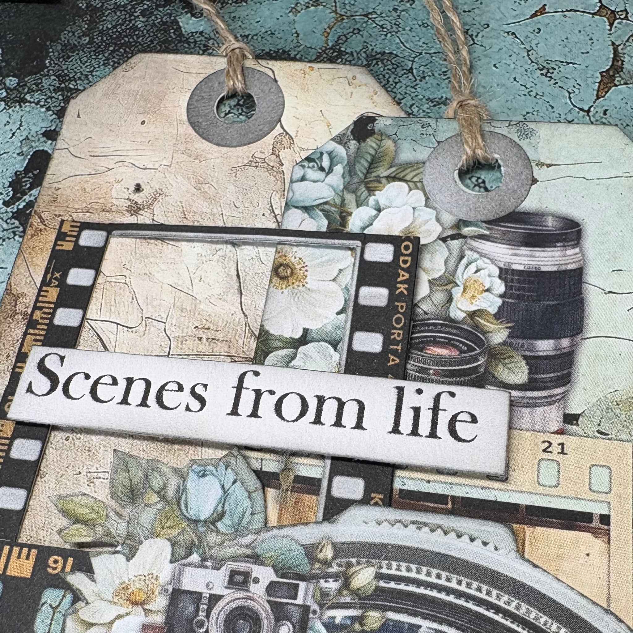 Featuring classic camera imagery, film strips, tags, and dimensional embellishments, this design celebrates the art of storytelling through photos. Thoughtful sentiments like “Capture it,” “Scenes from life,” and “Because every picture tells a story” add just the right touch of nostalgia.