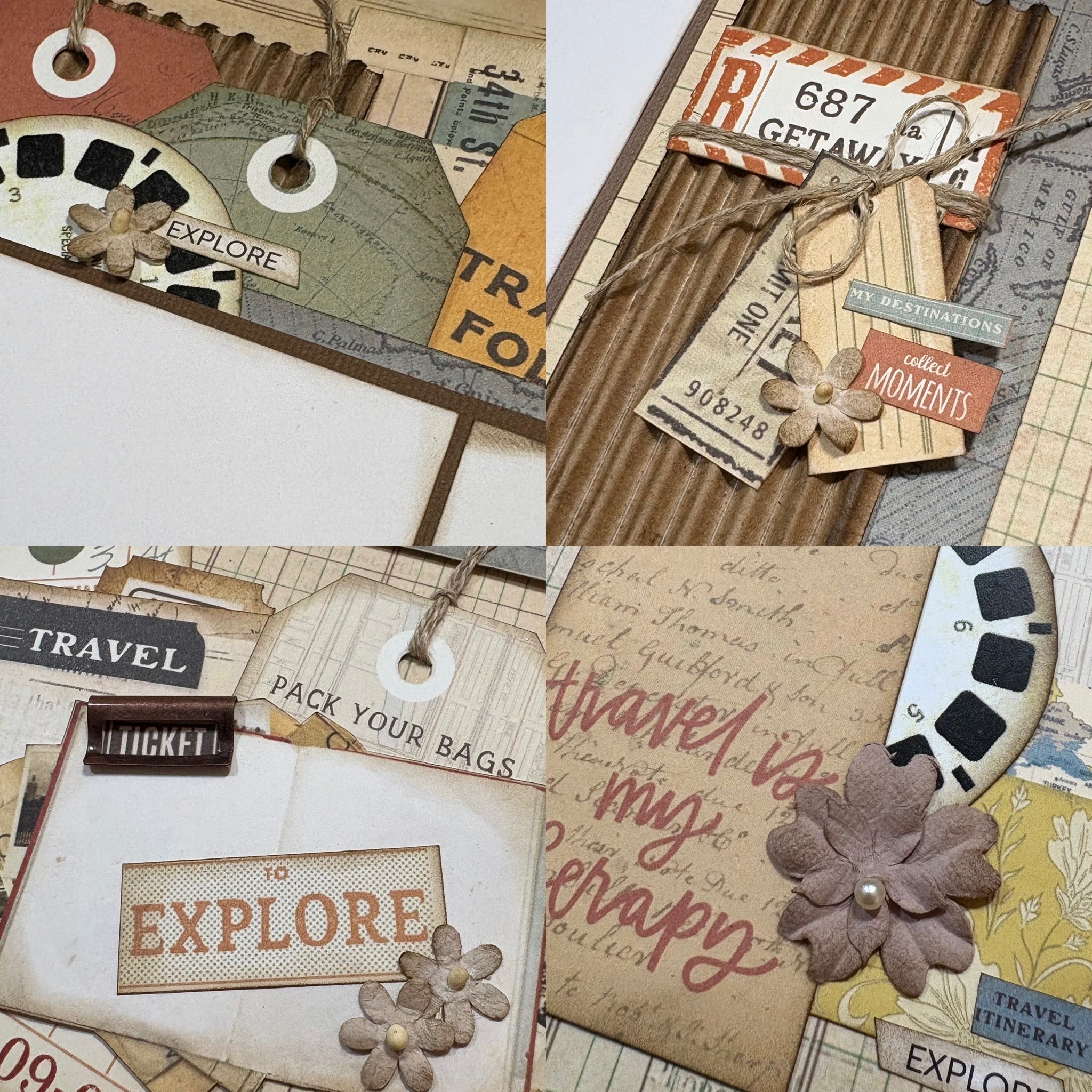This kit includes multiple photo mats, pockets, and tags to tuck in memories, journaling, or hidden treasures from your travels.